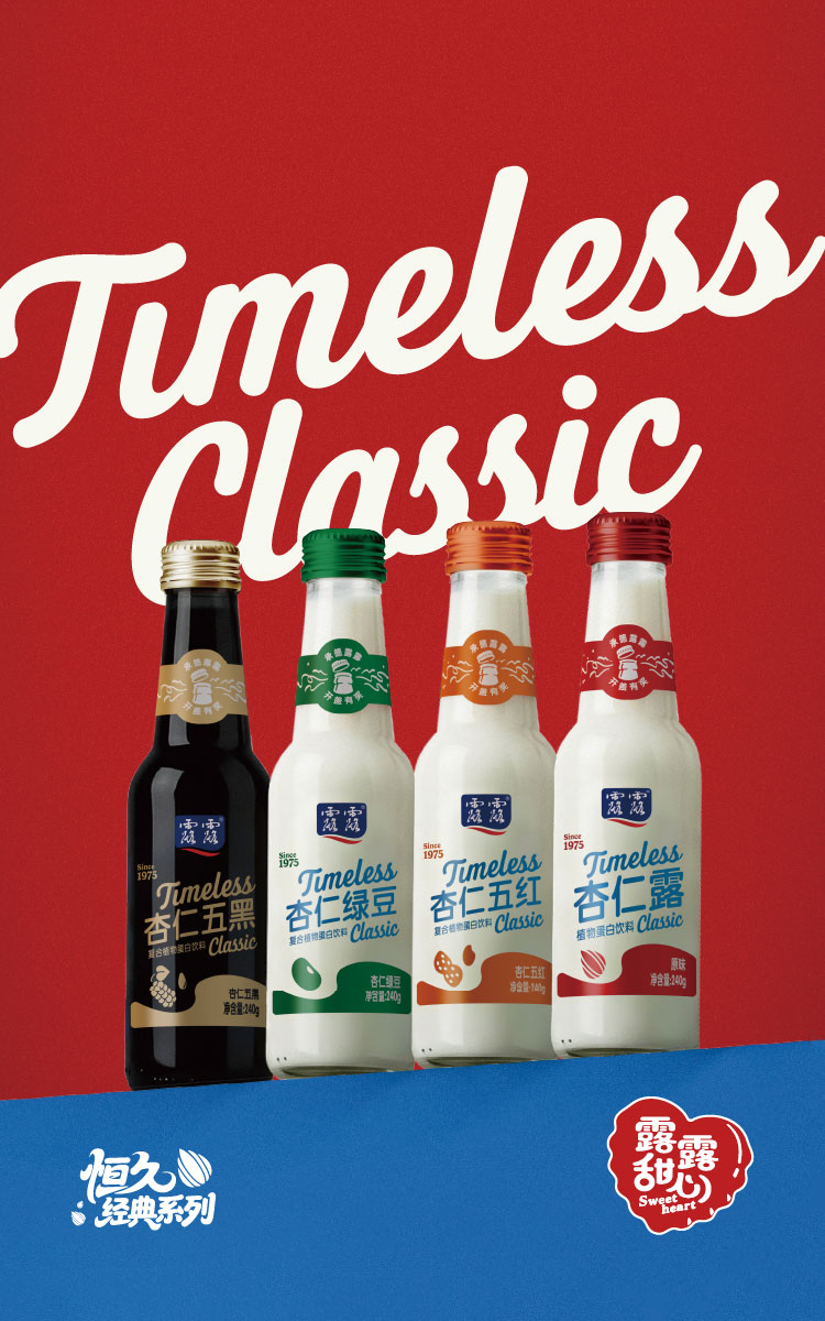 精選野山杏仁為原料、石磨工藝精制而成,經典配方,經典口味,消費者心目當中家喻戶曉的高端植物蛋白飲品,是一代人的溫暖記憶。